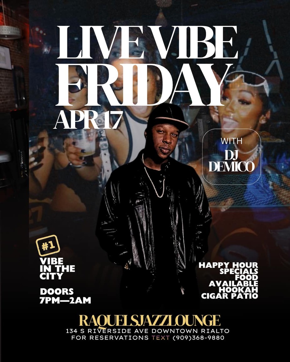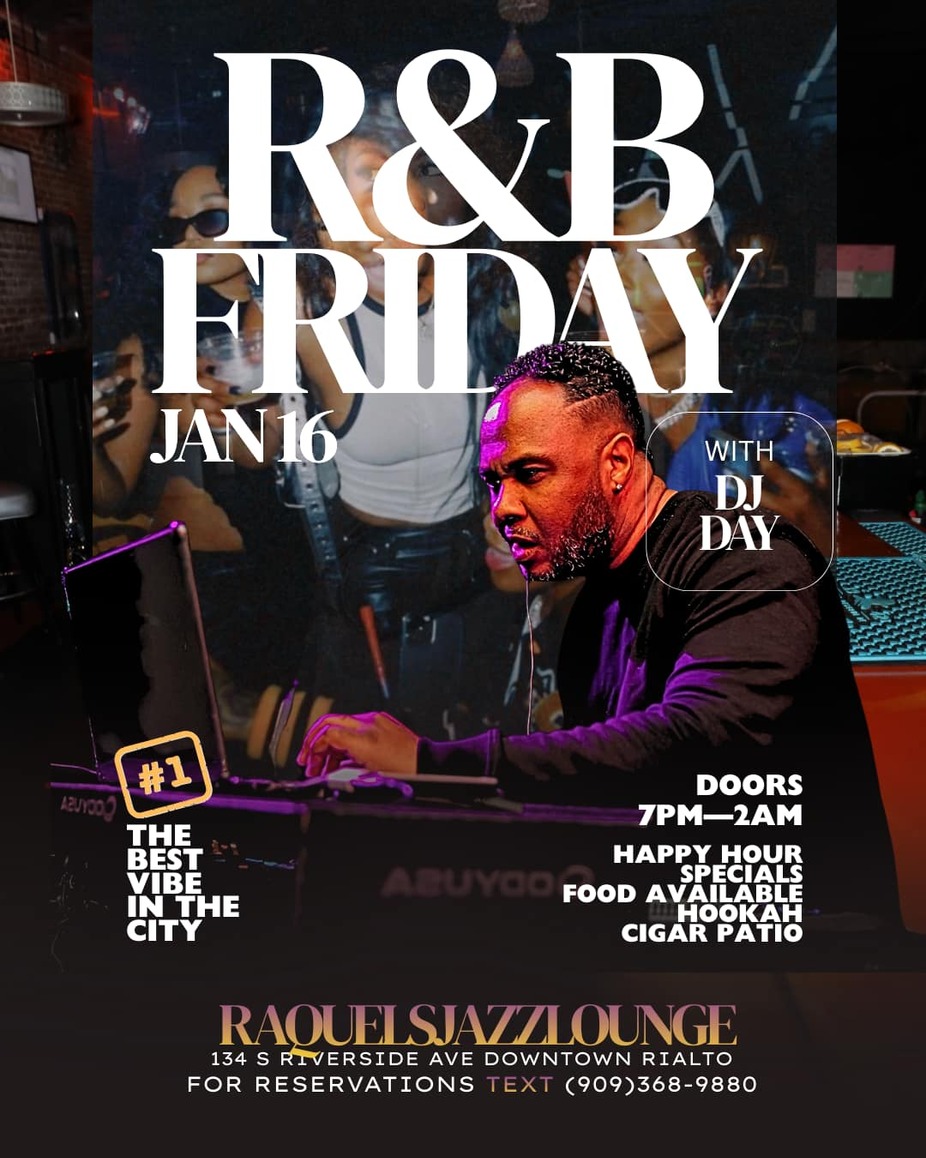 If you're a fan of R&B, Raquel’s is the spot to be on Friday nights, Enjoy the sounds of R&B with a live DJ and take advantage of our happy hour specials. Come and catch a VIBE.