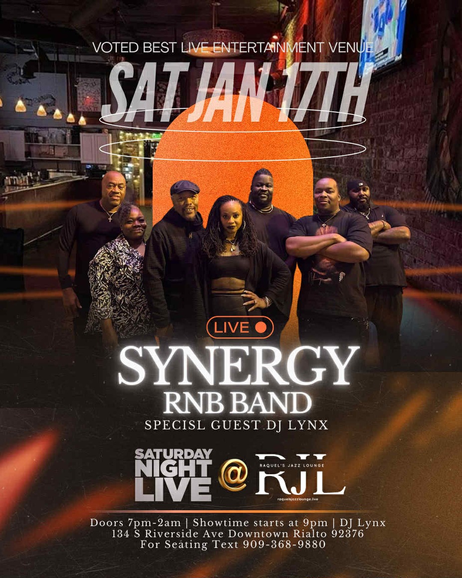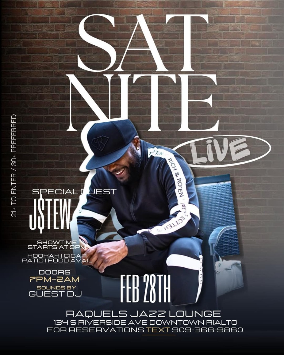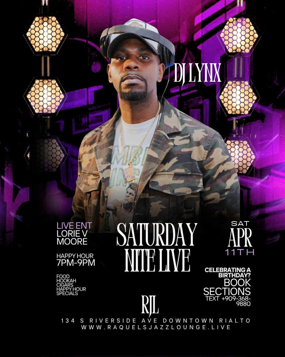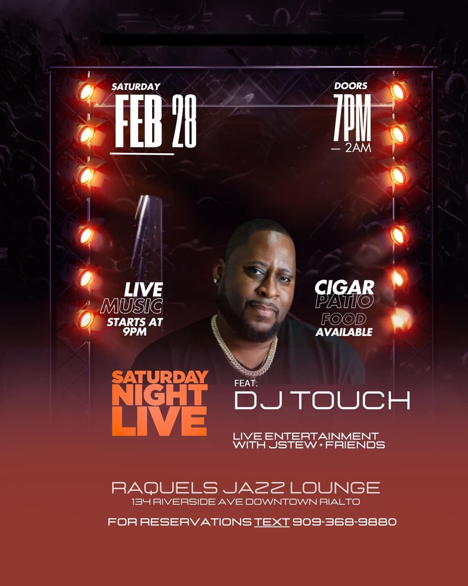 Make sure to experience Raquel's Jazz Lounge every Saturday night! Join us for an unforgettable evening filled with live music and a Live DJ. Be sure to make a reservation to guarantee seating! Text 909-368-9880 for reservations and additional information! Dress to impress, as we have a strict dress code in place. Indulge in exceptional cocktails and enjoy top-tier service for a truly elevated experience.