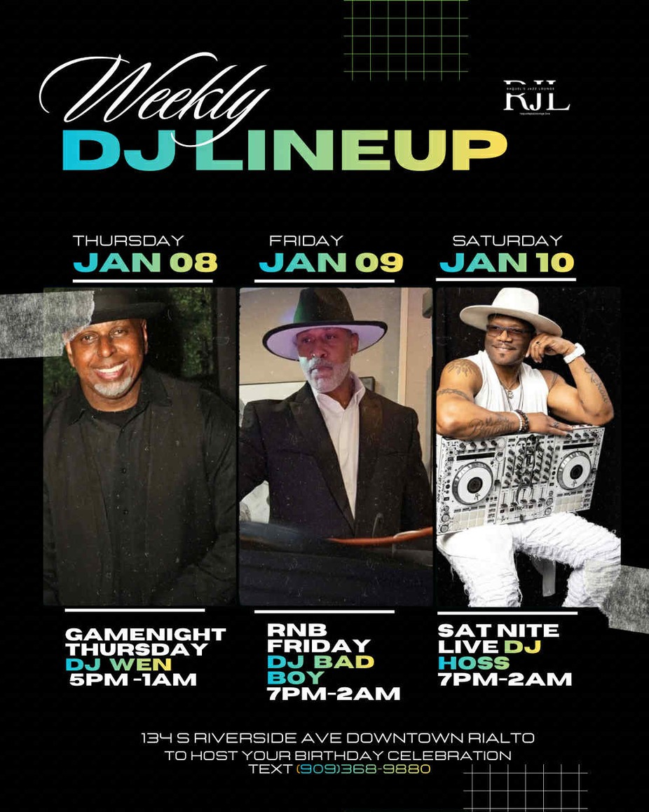 Join us every Thursday at Raquel’s Jazz Lounge for Game night! Enjoy watching sports, playing dominoes, Spades, and more. Thursdays are filled with great energy, and you definitely don’t want to miss out. There’s no cover charge, and plenty of seating awaits you! Need more info? TEXT 909-368-9880